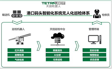 天創(chuàng)機(jī)器人助力日照港嵐山港區(qū)設(shè)備全面智能化巡檢,成功開辟港口碼頭智能化系統(tǒng)無人化巡檢新模式,推動(dòng)智慧綠色港口建設(shè)與智能化巡檢技術(shù)領(lǐng)域深度融合應(yīng)用。